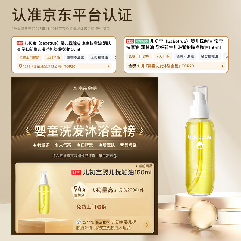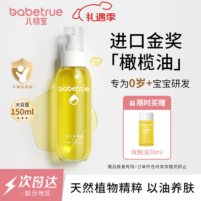 儿初宝(babetrue)婴儿抚触油 宝宝按摩油 润肤油 孕妇新生儿滋润护肤橄榄油150ml