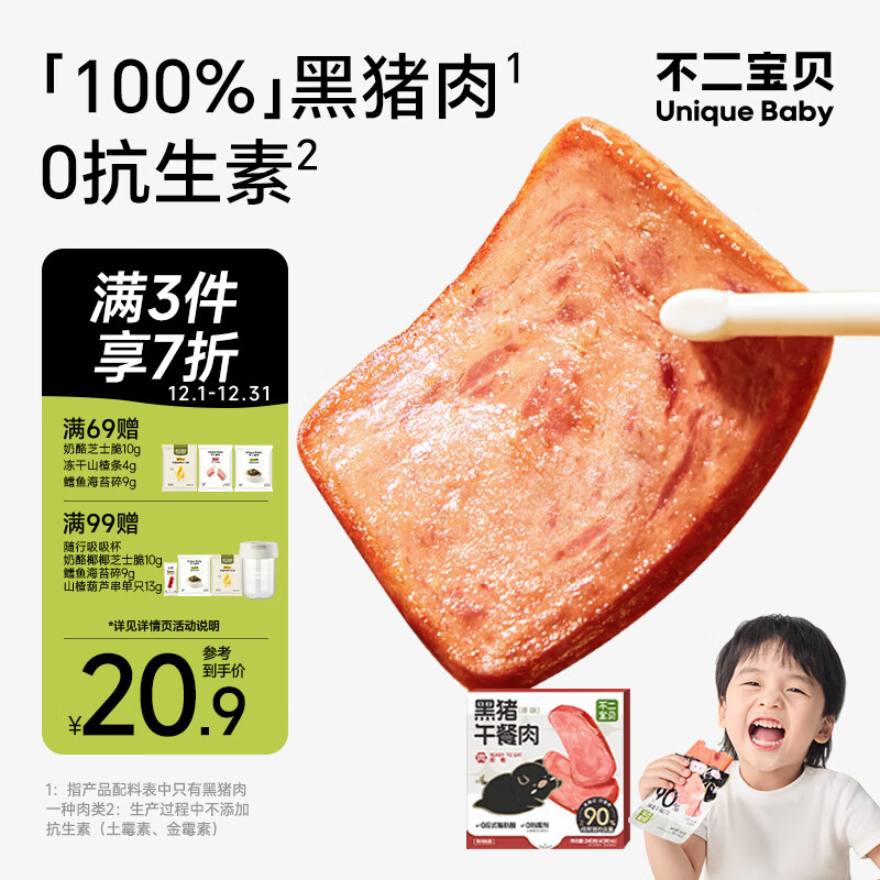不二宝贝儿童黑猪午餐肉即食无添加 儿童宝宝零食早餐搭三明治240g单独6片