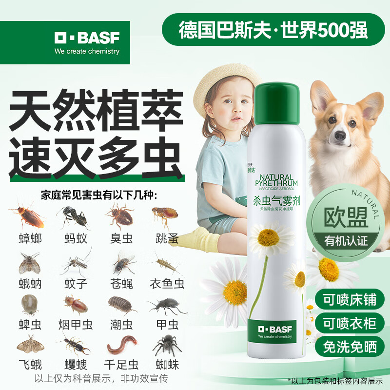 巴斯夫除虫菊杀虫剂喷雾蟑螂药蚂蚁跳蚤臭虫苍蝇衣鱼小飞虫下水道165ml