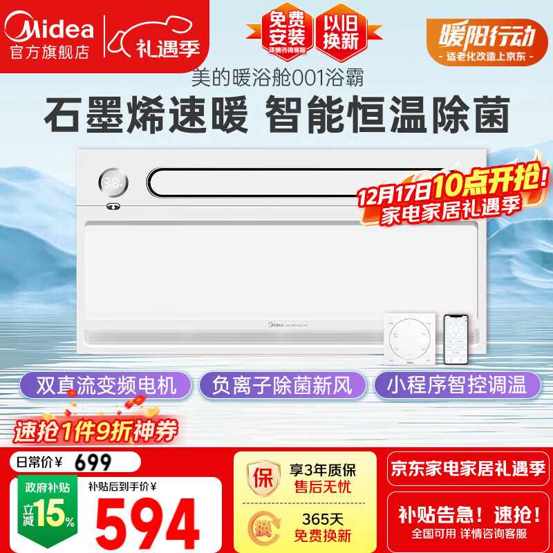 美的(Midea)石墨烯速暖浴霸灯暖风照明排气一体摆风速暖集成吊顶暖浴舱001