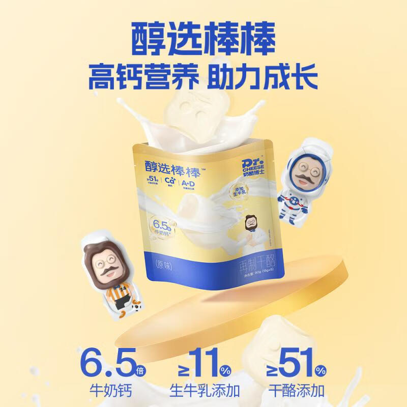 奶酪博士高钙醇选奶酪棒90g 宝宝儿童零食0添加牛奶棒≥51%干酪享婴儿食谱