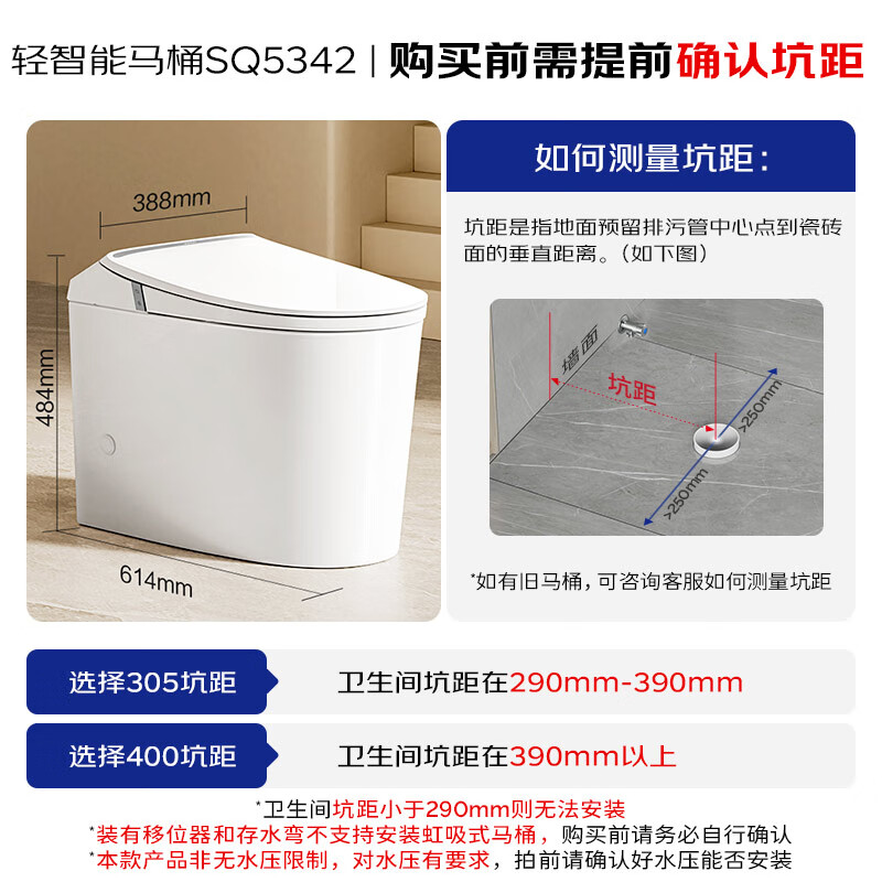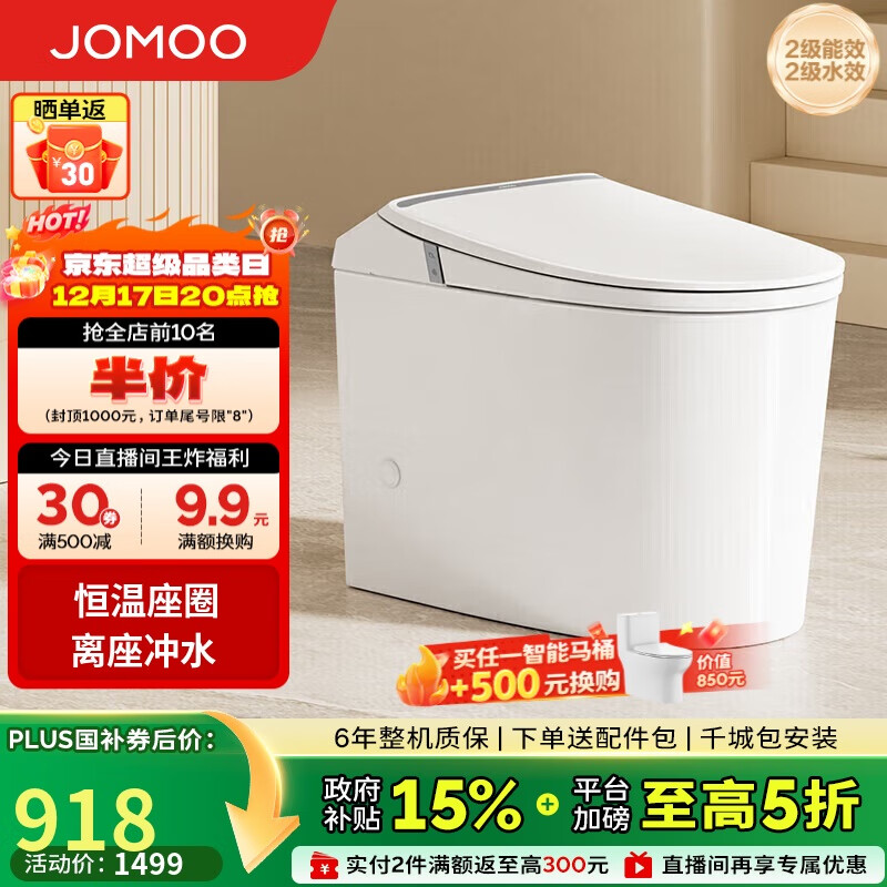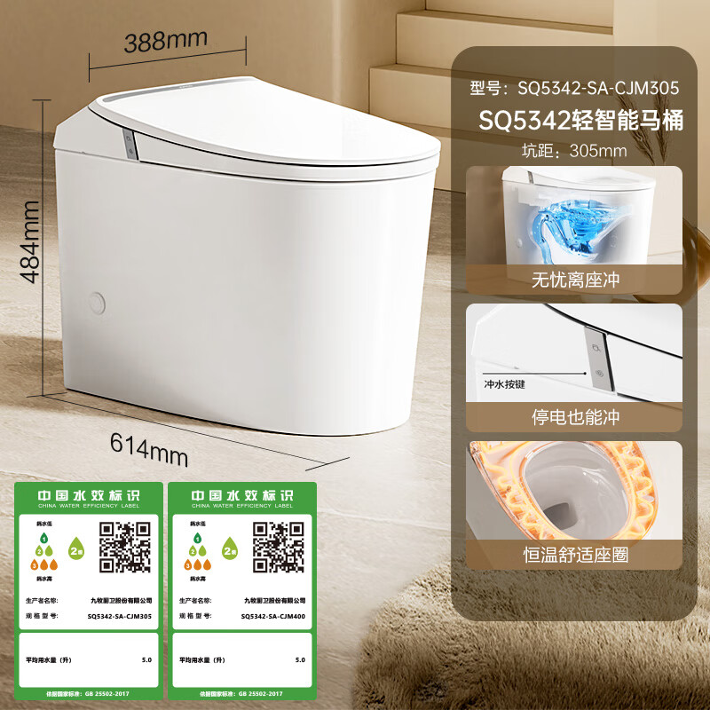九牧(JOMOO)轻智能离座冲水恒温座圈虹吸马桶坐便器305坑距SQ5342-SA-CJM305