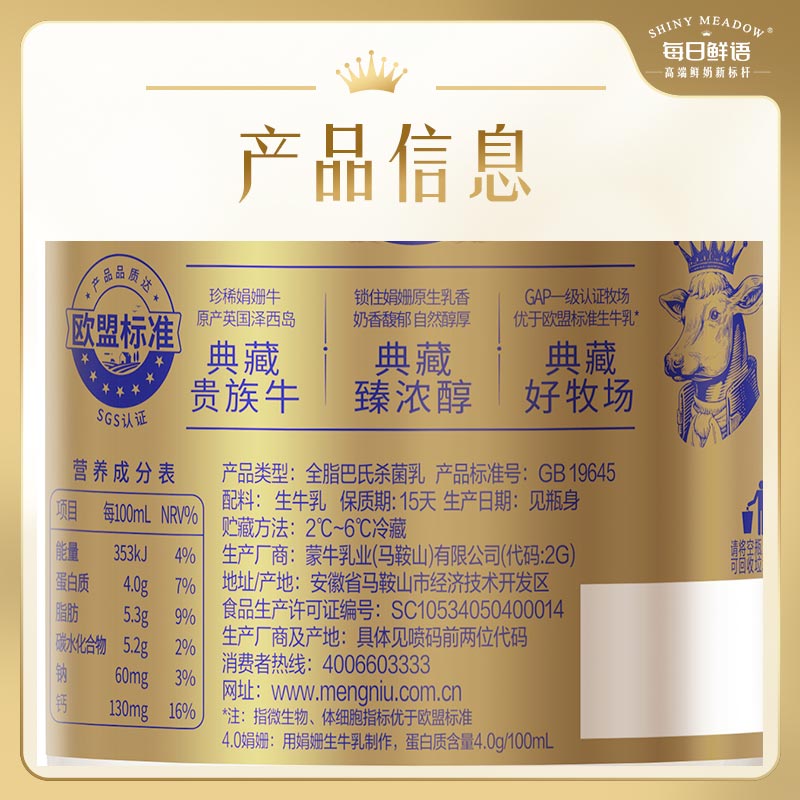 每日鲜语鲜牛奶 娟姗4.0g蛋白质250ml*5+4.0g蛋白质250ml*5 共10瓶