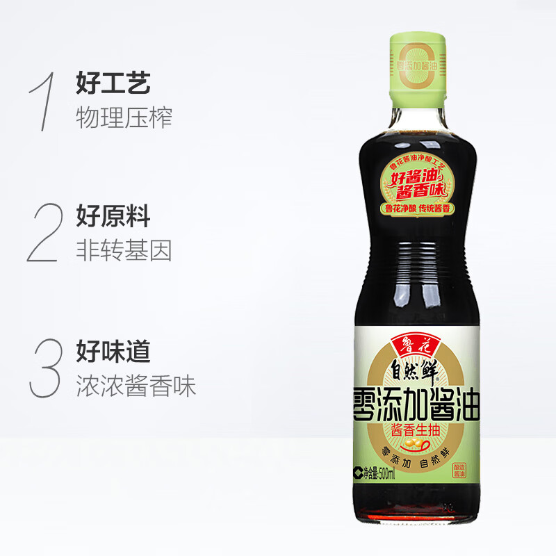 鲁花自然鲜零添加系列 生抽酱油【0添加防腐剂 特级生抽】500ml调味品