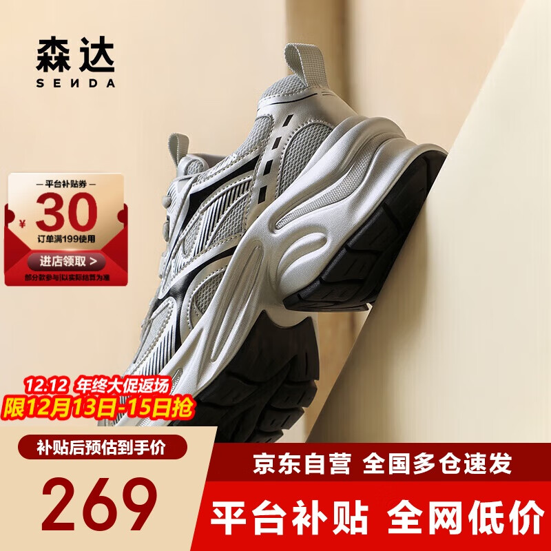 森达老爹鞋女厚底增高透气休闲鞋女士运动鞋ZCC31CM4 银色 37