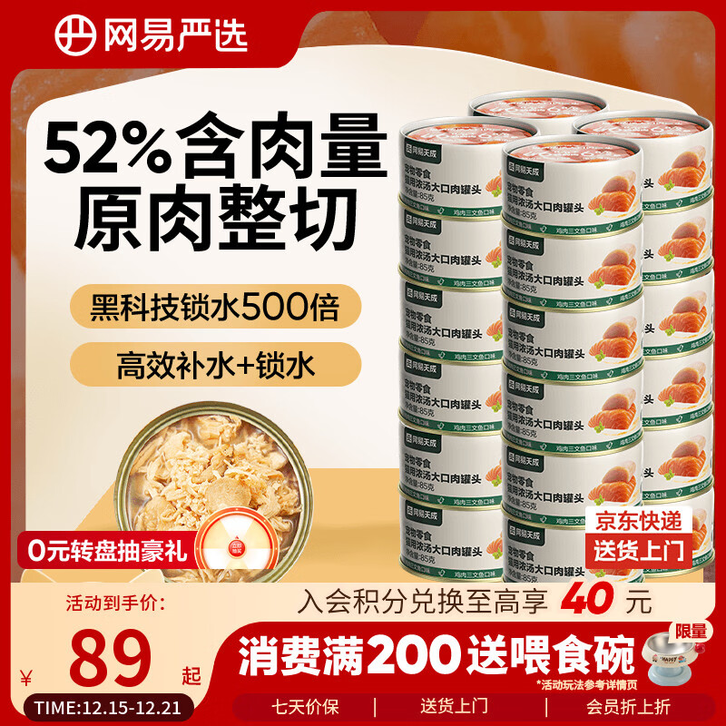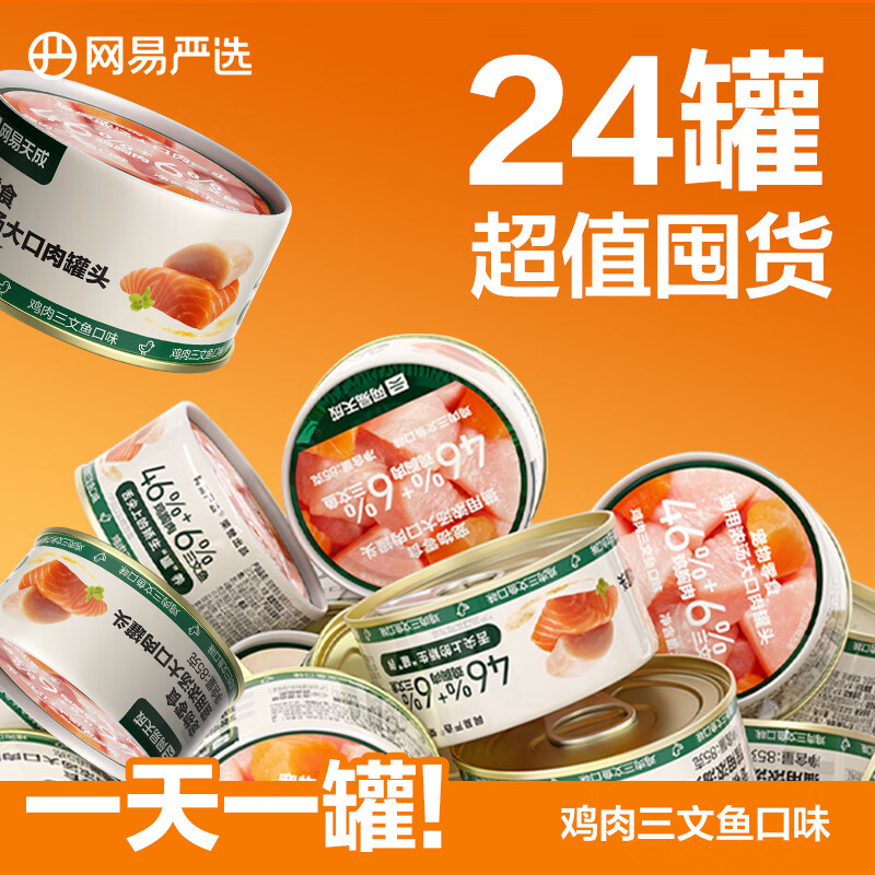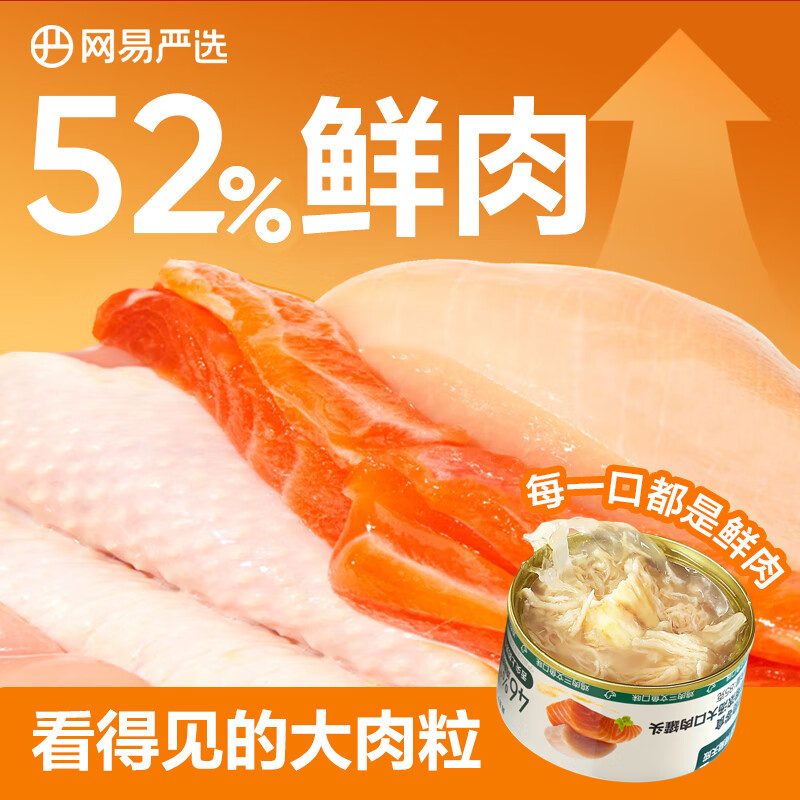 网易严选猫湿粮零食浓汤大口肉罐头鸡肉+三文鱼 85g*24罐
