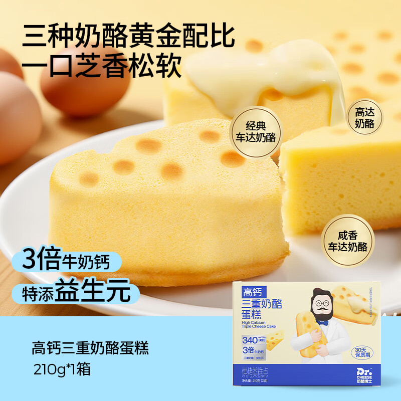 奶酪博士高钙三重奶酪儿童蛋糕210g宝宝儿童零食早餐益生元面包热门商品