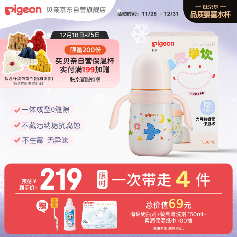 贝亲(Pigeon)宝宝儿童彩绘保温杯水杯保温奶瓶吸管学饮杯防呛防漏300ml 12月+
