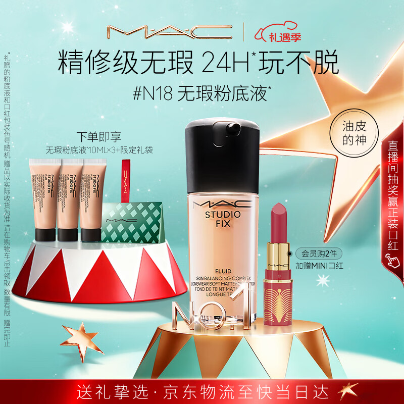 M.A.C【油皮的神】魅可无瑕粉底液控油遮瑕持久不脱妆#N18 圣诞礼物