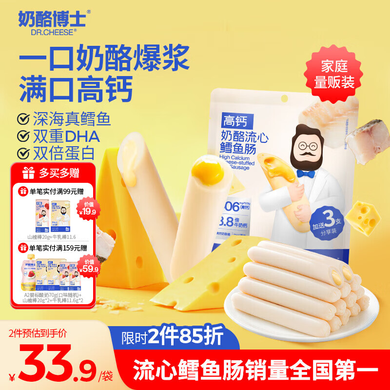 奶酪博士奶酪流心鳕鱼肠300g 宝宝儿童零食深海鳕鱼双重DHA享婴幼儿食谱