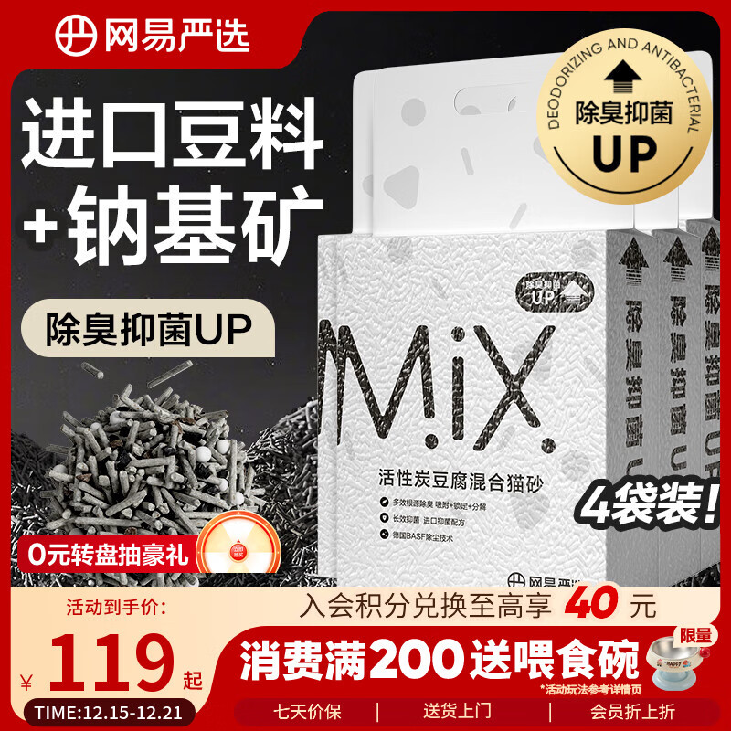 网易严选活性炭豆腐猫砂除臭易结团进口钠基矿石膨润土混合猫砂 2.5kg*4包