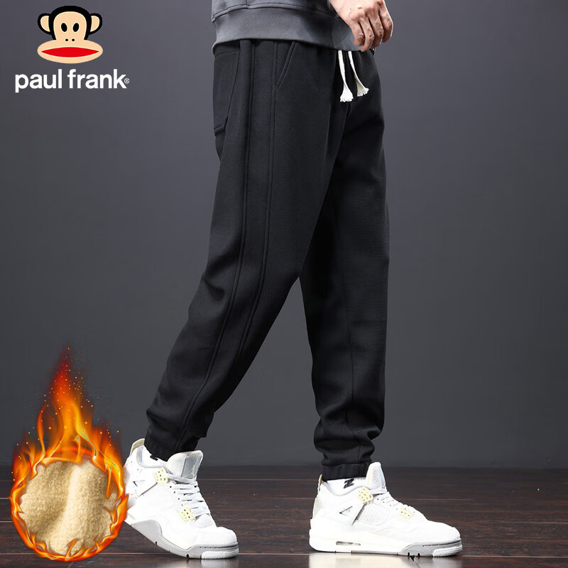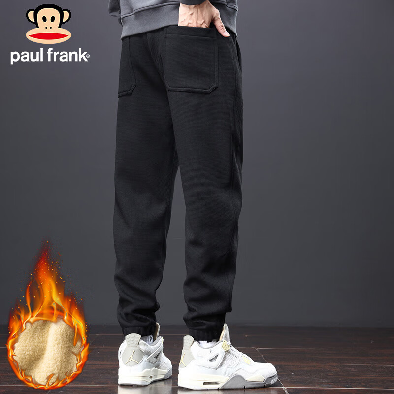 大嘴猴(paul frank)裤子男士秋冬季休闲裤男裤宽松运动小脚束脚卫裤男 黑色 加绒 XL