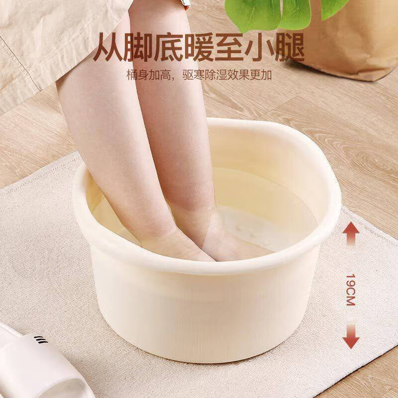 泡脚桶塑料足疗足浴盆沐足桶按摩加厚洗脚盆家用泡脚盆过小腿 【按摩足浴盆】奶油白[活动款]