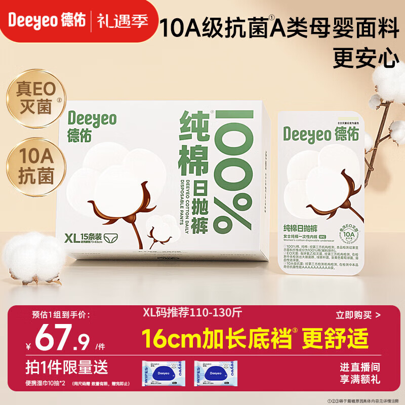 德佑一次性内裤女孕产妇出差生理期纯棉内裤10A抑菌XL码15条