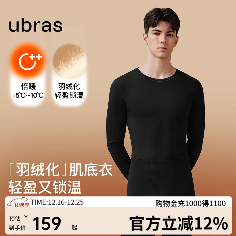 ubras新柔暖羽绒化肌底衣套装男保暖秋衣秋裤情侣打底倍暖漆黑色 XL