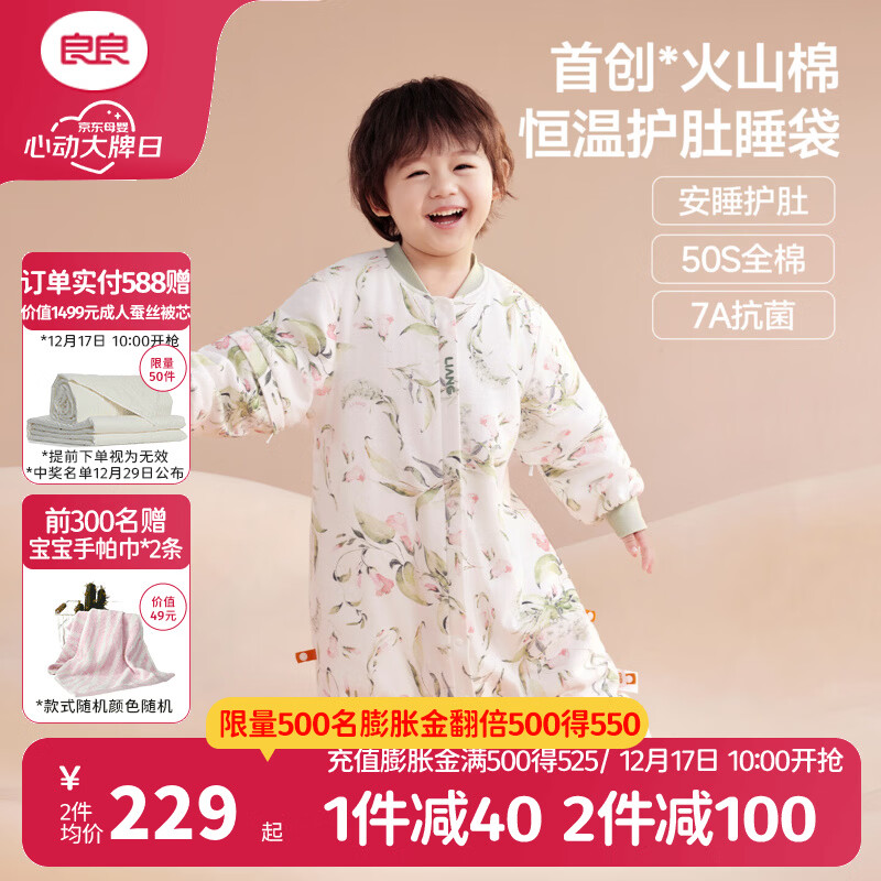良良(liangliang)[25年新品]婴儿睡袋火山棉恒温儿童乖肚肚秋冬宝宝分腿防踢被子 厚夹棉【适合6-10℃】风铃草 XL(建议身高90-105cm)