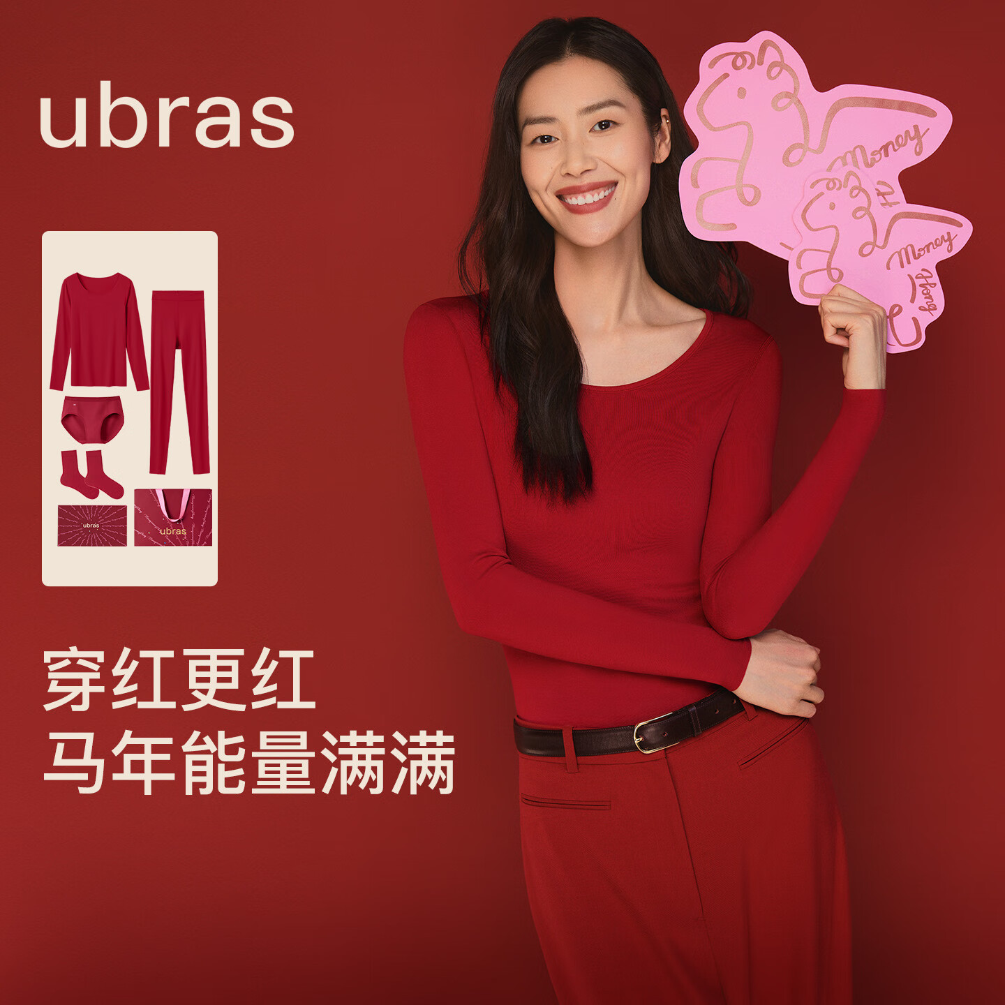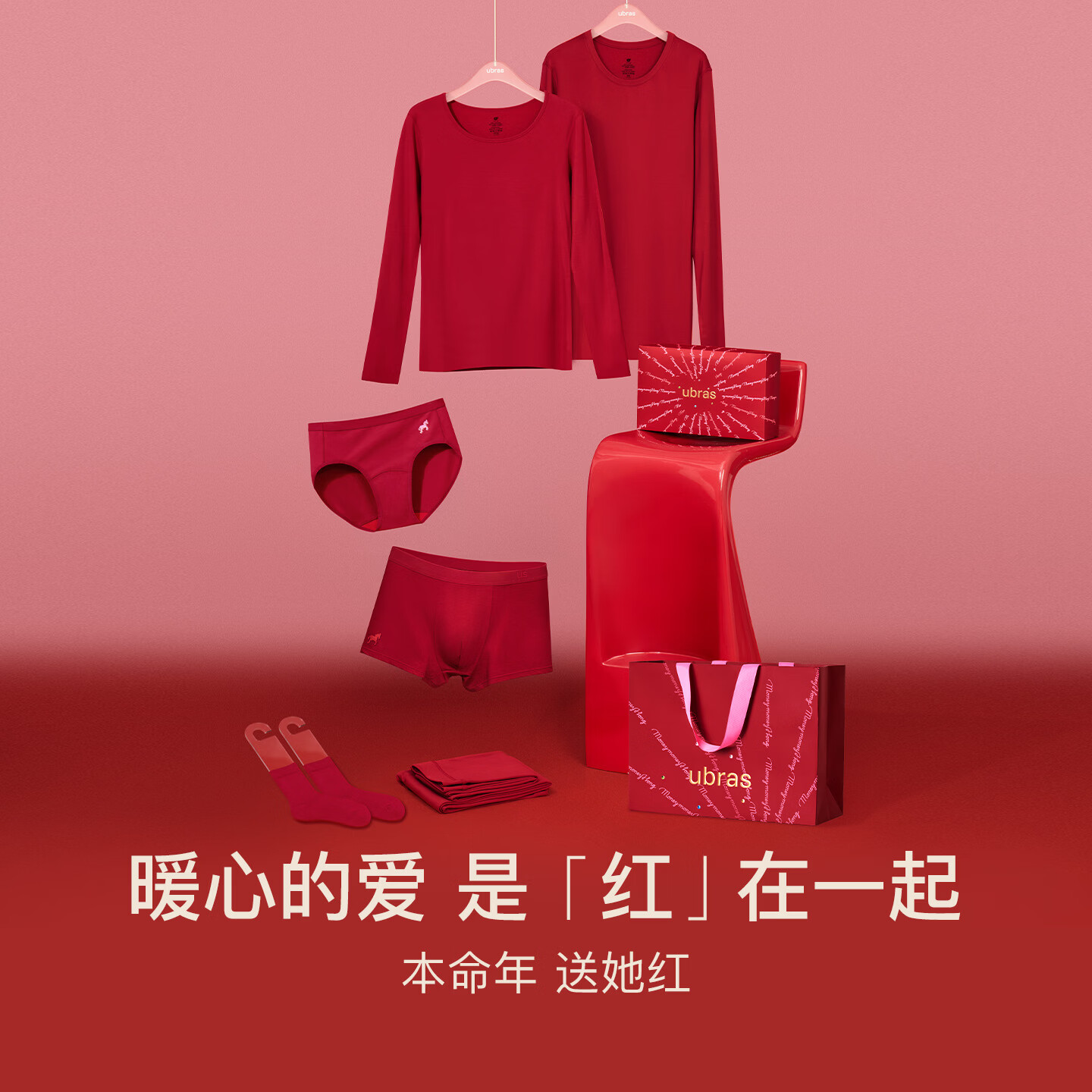 ubras刘雯同款本命年羊毛保暖内衣肌底衣套装大红盒女打底情侣结婚 L