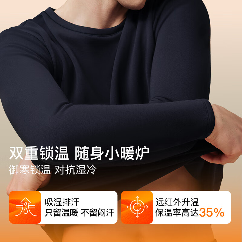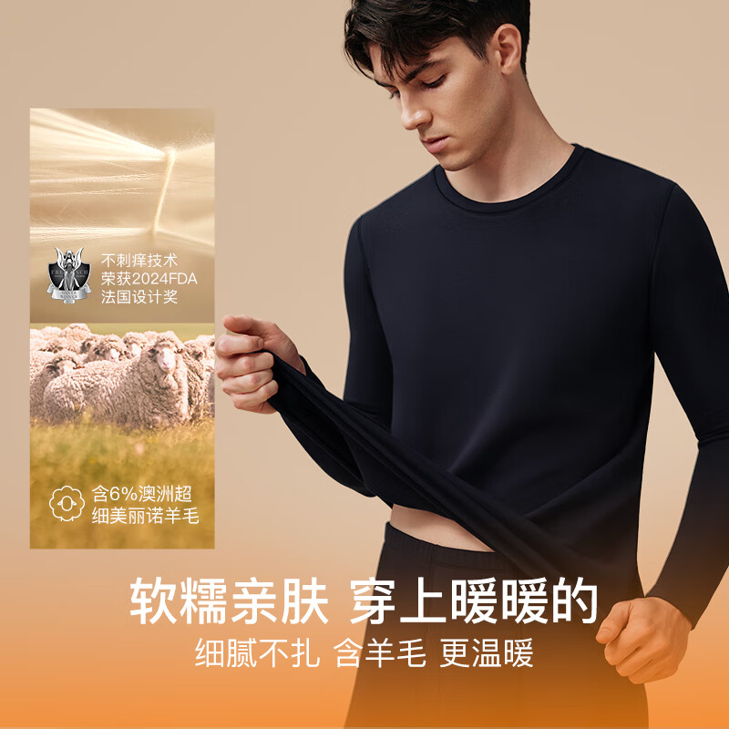 ubras羽绒化加厚亲肤羊毛肌底衣套装保暖内衣男士锁温秋衣裤花深灰XL