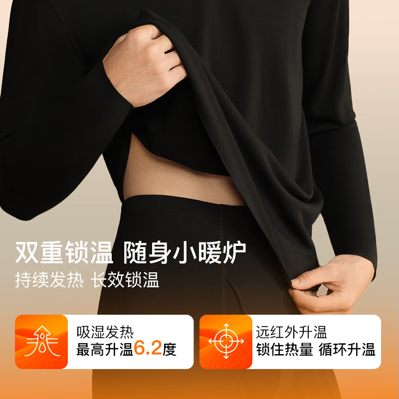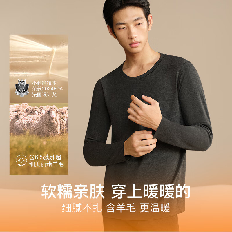 ubras羽绒化科技羊毛肌底衣保暖套装锁温打底衫男秋衣秋裤花深灰色轻暖