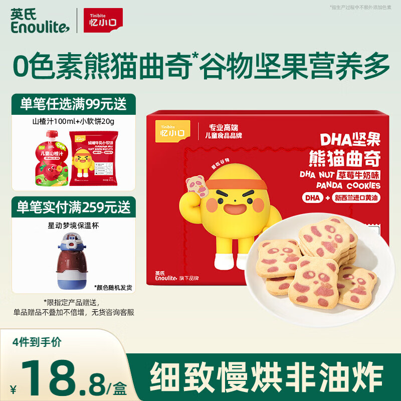 英氏曲奇饼干草莓牛奶味 儿童零食 DHA坚果熊猫曲奇 解馋休闲零食85g