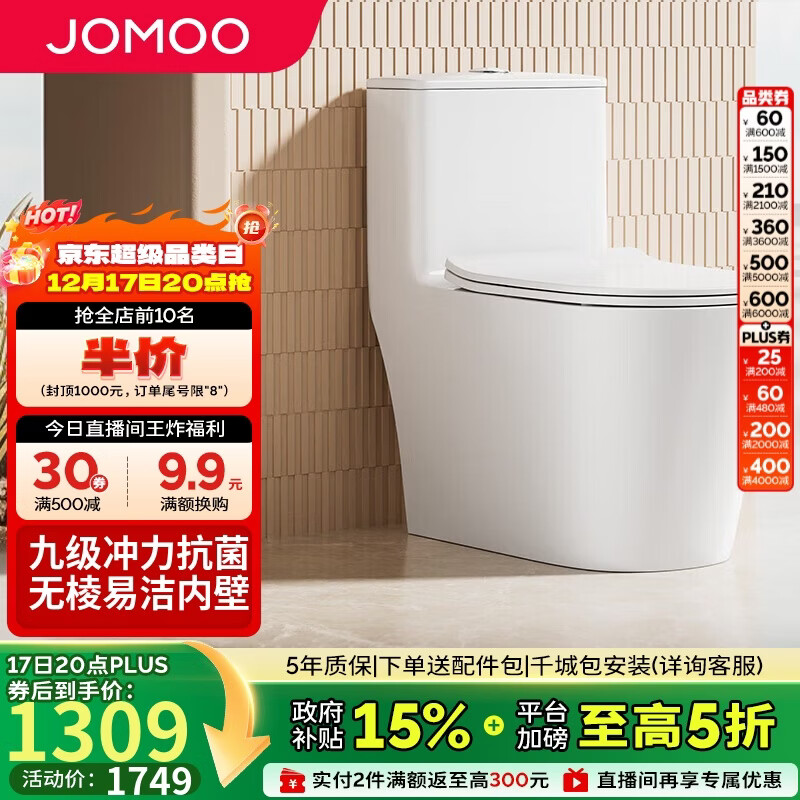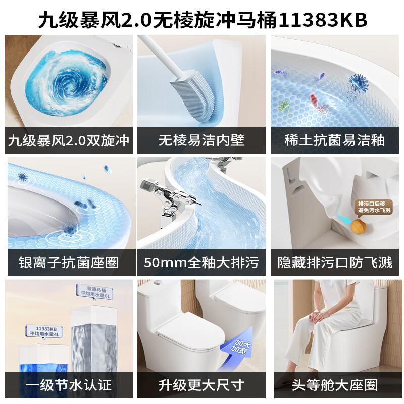 九牧(JOMOO)11383-2-1/31KB-1家用虹吸抗菌双漩坐便器大冲力节水马桶305坑距
