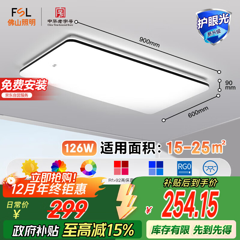 FSL佛山照明全光谱护眼吸顶灯客厅遥控豁免级蓝光Ra97悦夕126W包安装