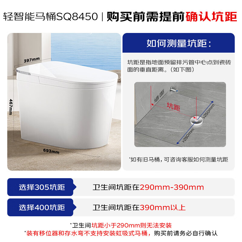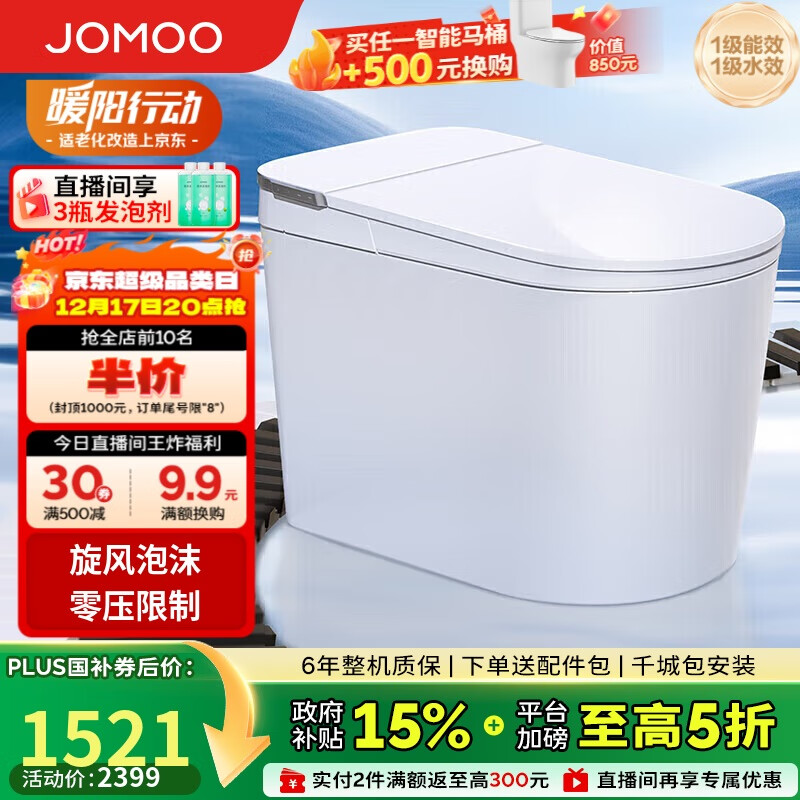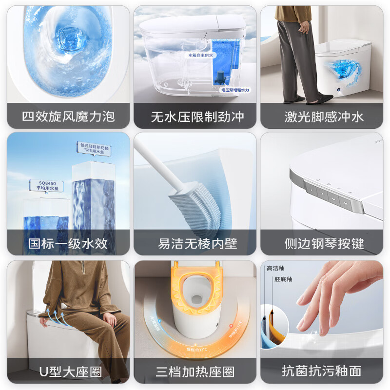 九牧(JOMOO)白魔方无水压限制旋风魔力泡脚感冲水轻智能马桶SQ8450-S0-CJM400