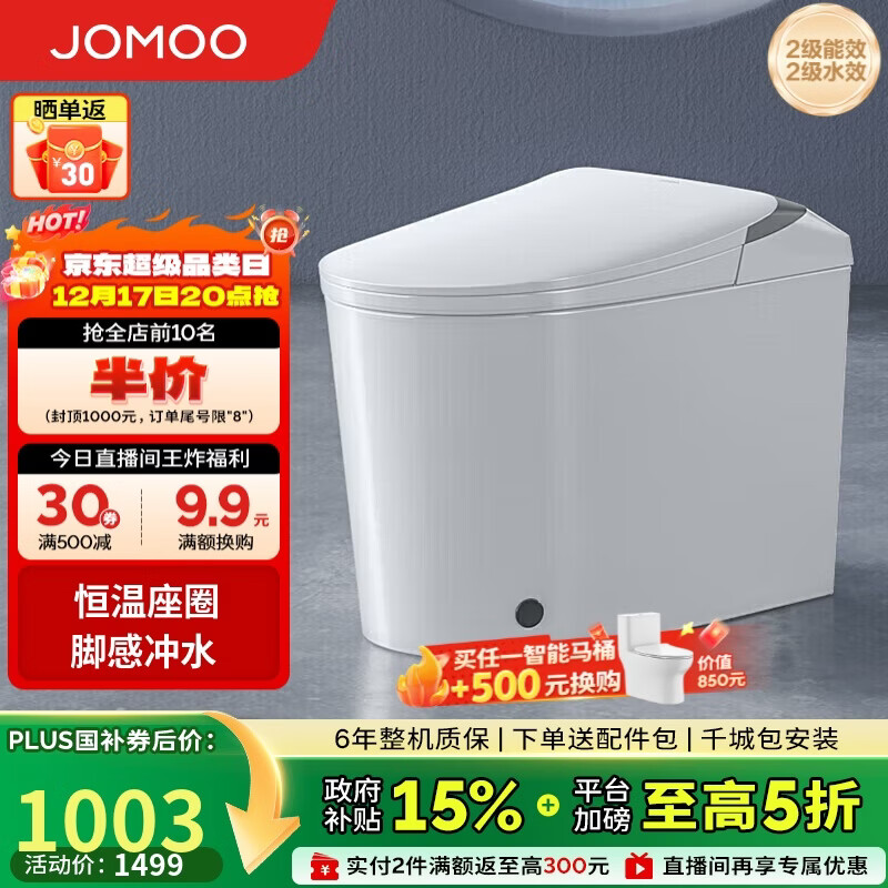 九牧(JOMOO)J11423-1-1/31K-1脚感冲水恒温座圈离座冲轻智能马桶305坑距
