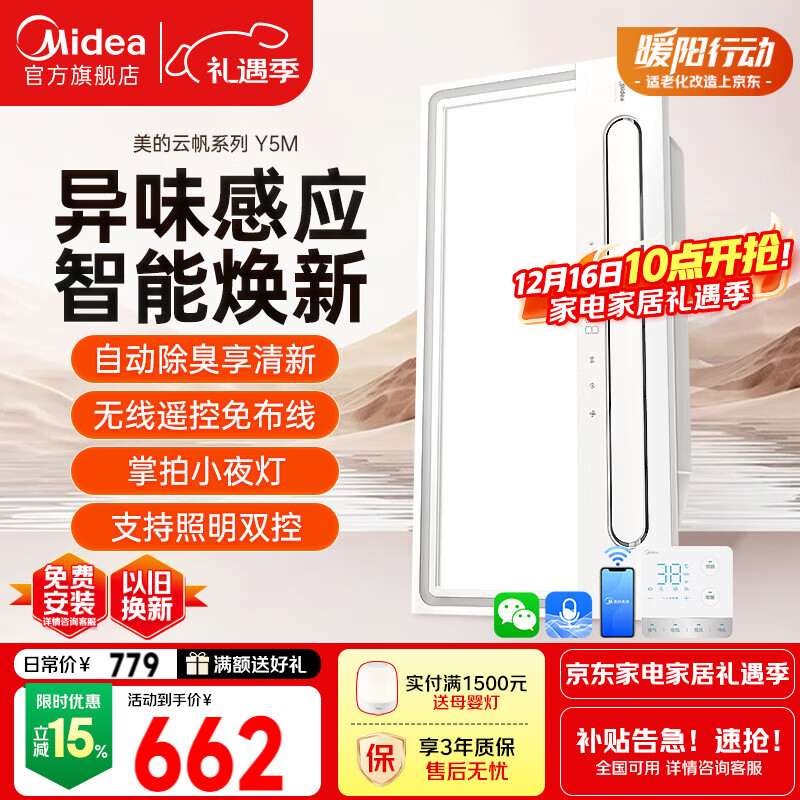 美的(Midea)浴霸暖风照明排气一体摆风速暖浴室智能语音取暖器卫生间灯Y5M