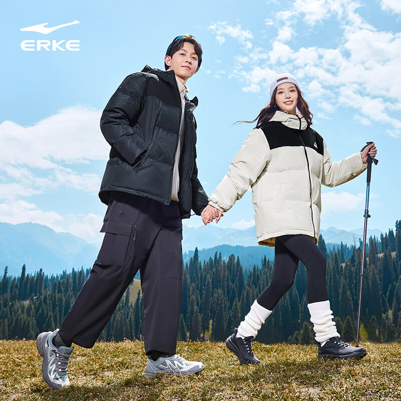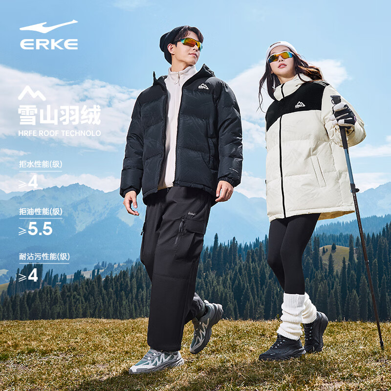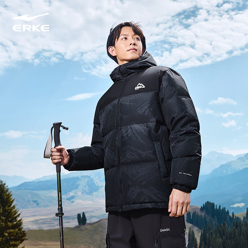 鸿星尔克四防|羽绒服男秋冬新款保暖防风防污防泼水户外休闲运动外套夹克 正黑 2XL