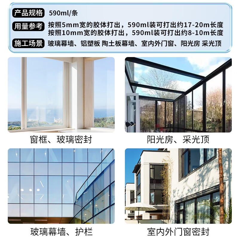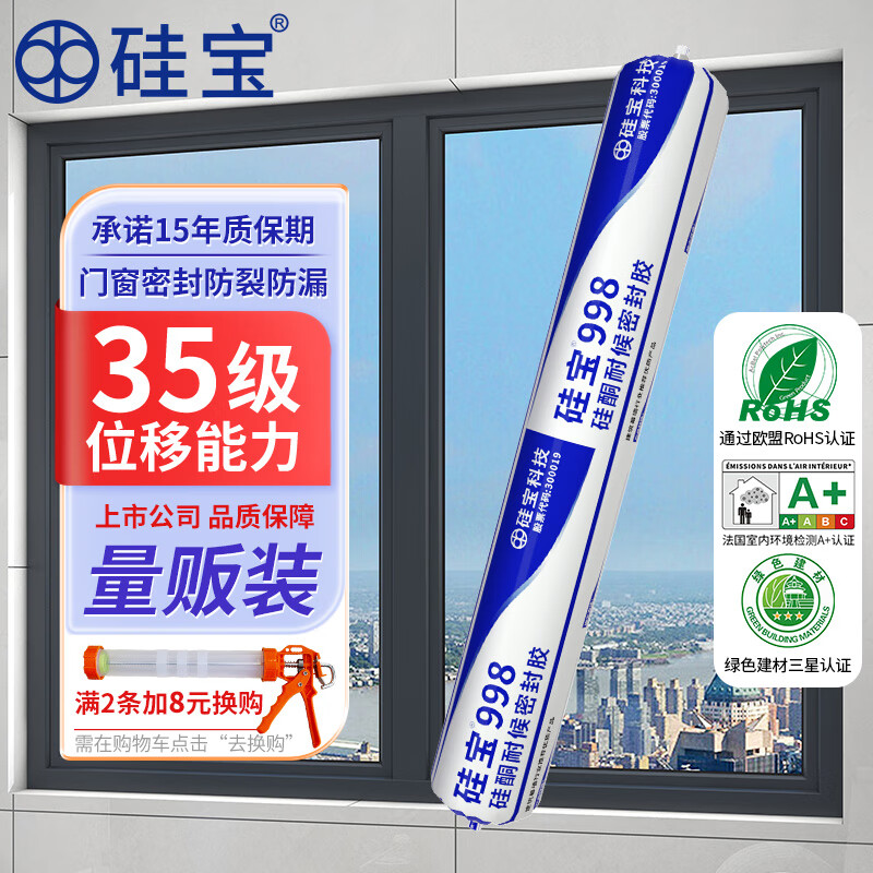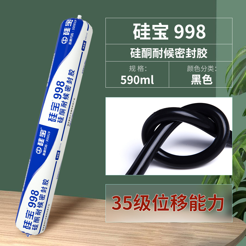 硅宝998中性硅酮耐候密封胶防水透明玻璃胶阳光房建筑 软包装 黑色1条