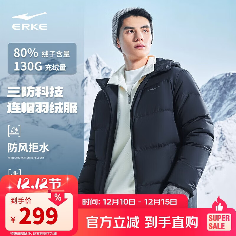 鸿星尔克羽绒服男冬季高寒新品保暖宽松厚款外套连帽三防科技通勤休闲上衣
