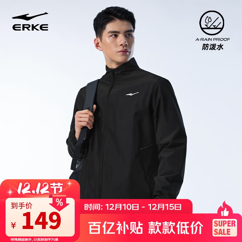 鸿星尔克防泼水夹克外套男秋季开衫束口防风骑行服跑步衫上衣
