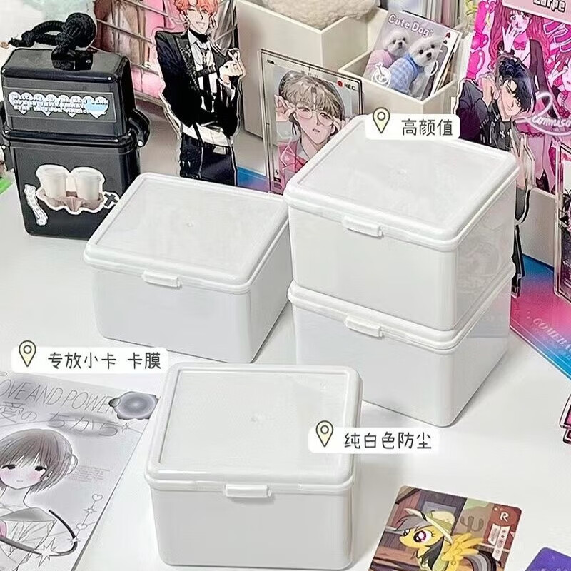 纯白翻盖收纳盒咕卡小卡卡膜收纳整理盒子多功能盒 1个装小号9.5*8*6