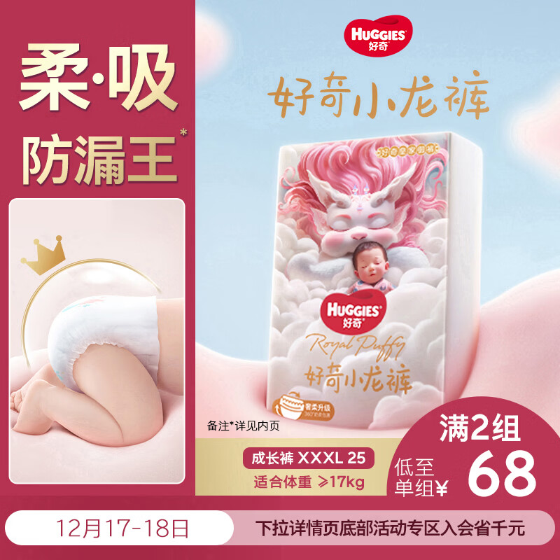 好奇(Huggies)皇家小龙裤拉拉裤XXXL25片(17kg以上)尿不湿【30倍爆吸】