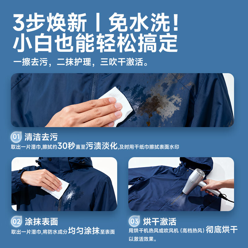 德佑冲锋衣清洁湿巾10包*1盒 免水洗防水层修复 衣物去渍去油污便携装