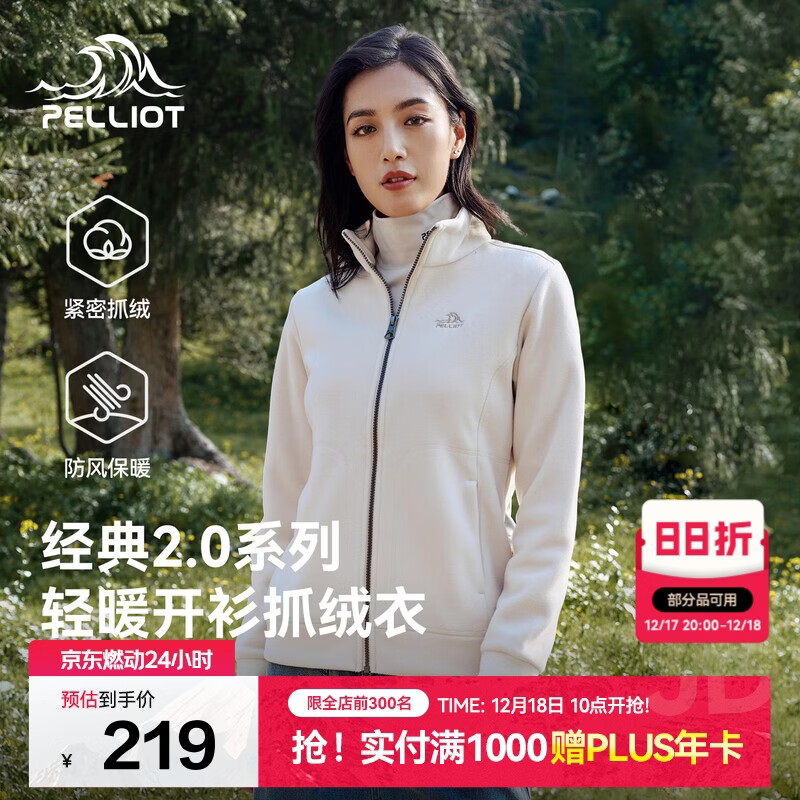 伯希和(Pelliot)【经典2.0】抓绒衣女摇粒绒外套冲锋衣内胆保暖夹克125110022白M