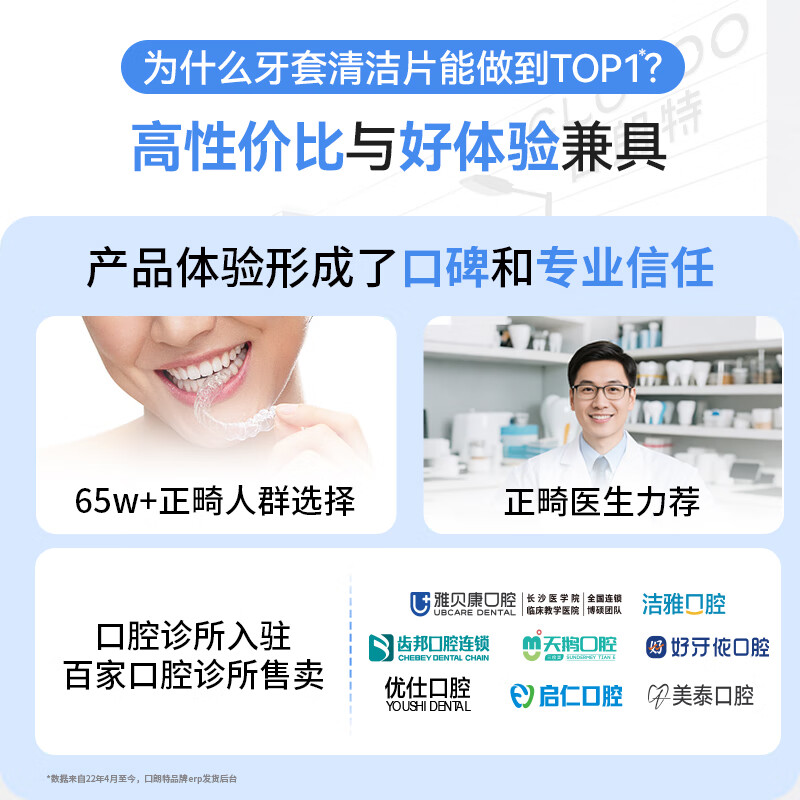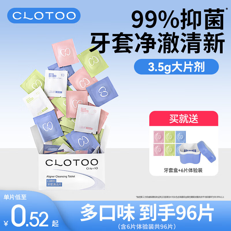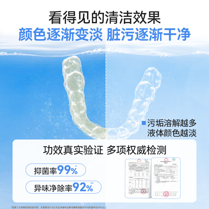 口朗特牙套泡腾片保持器清洁片假牙正畸隐形牙套清洗液混合果味3盒96片