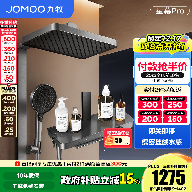 九牧(JOMOO)花洒淋浴套装钢琴按键大置物台淋浴喷头丝雨增压淋浴器 【丝雨花洒星幕版】36676预售