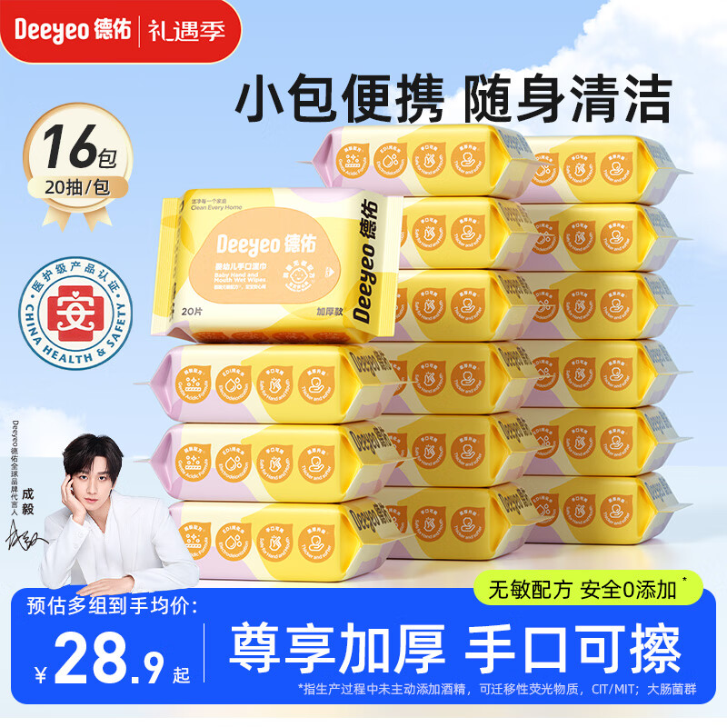 德佑婴儿湿巾20抽*16包 婴儿手口湿纸巾小包便携湿巾出行随身必备
