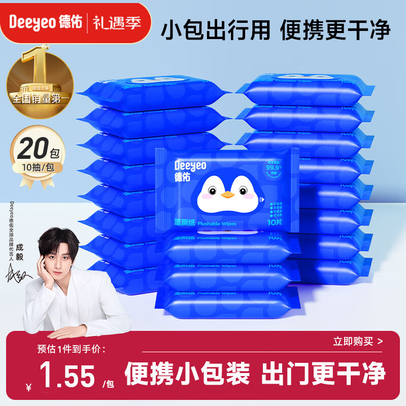 德佑湿厕纸便携装小包10抽20包出行清洁湿巾纸企鹅款加厚清爽不黏腻
