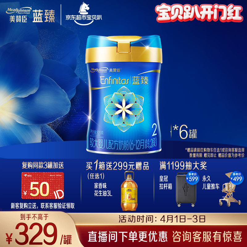 美赞臣蓝臻 较大婴儿配方奶粉 2段(6-12月)820g*6罐 实证乳铁蛋白