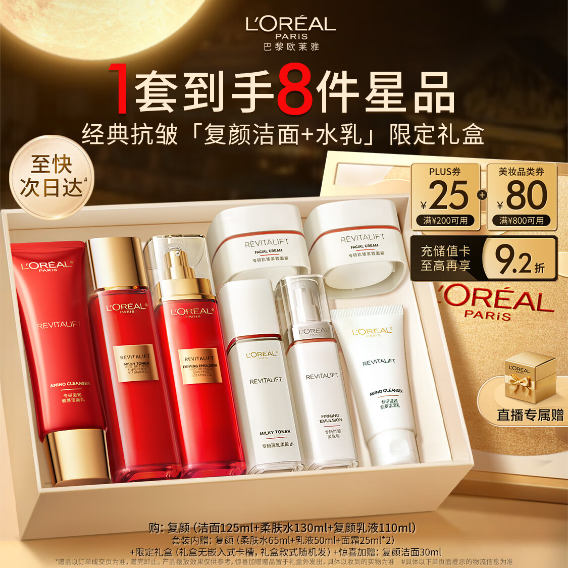 欧莱雅复颜洁面水乳限量礼盒套装抗皱补水护肤品化妆品生日圣诞礼物