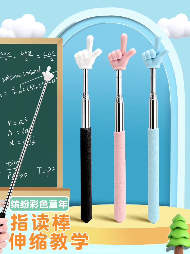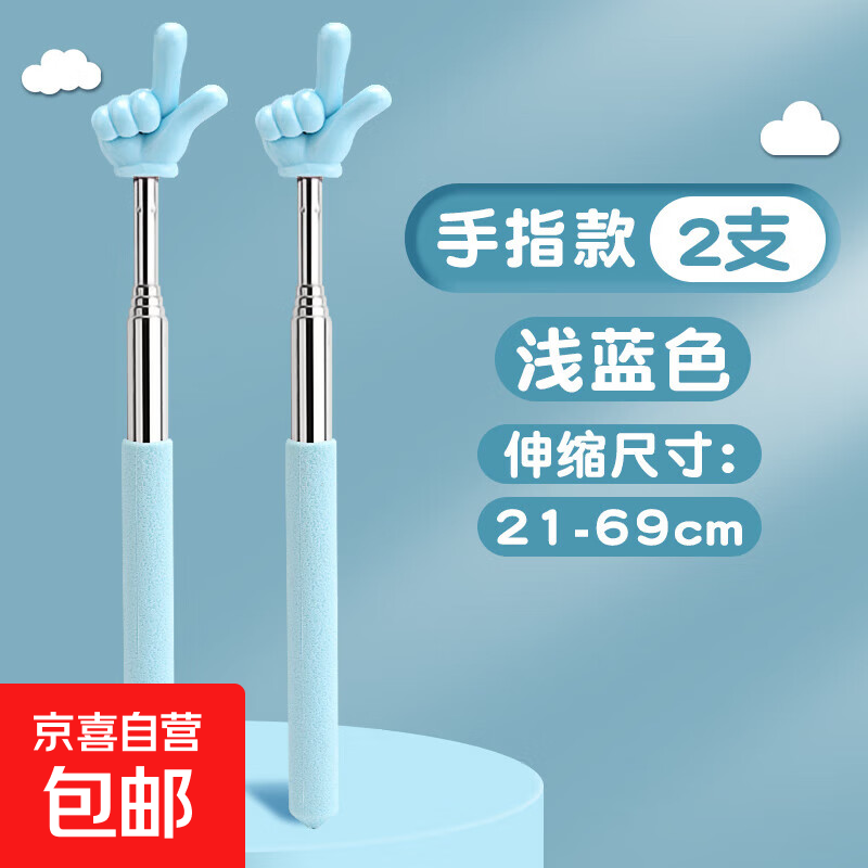 可伸缩教鞭教师专用儿童阅读指读棒小手指棒教具家用读书看书学习触屏幼儿园点读教棍教杆指示早教黑板钢琴 手指款2支 蓝色