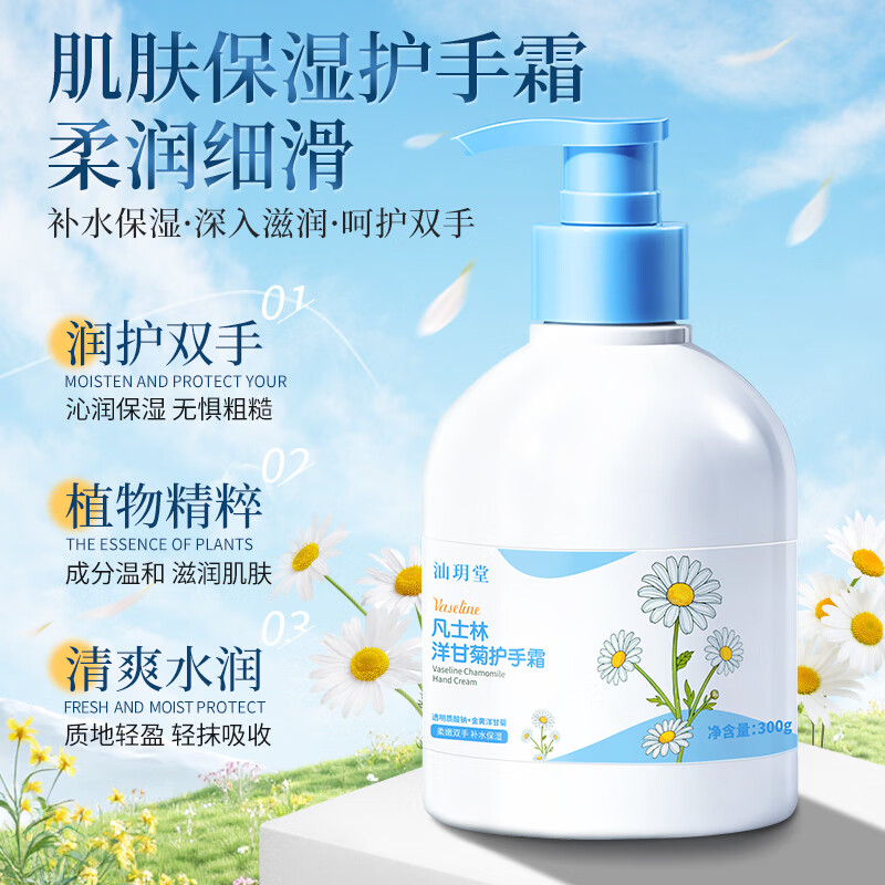汕玥堂凡士林洋甘菊护手霜女补水保湿滋润手足防干裂秋冬季留香手膜霜 凡士林洋甘菊手霜300gx2瓶/