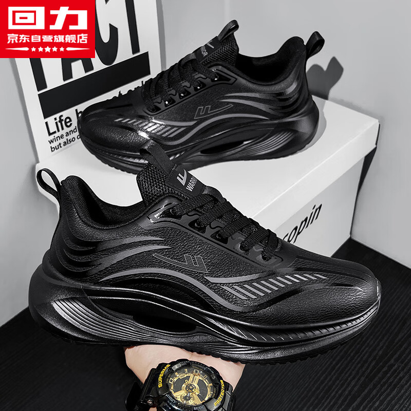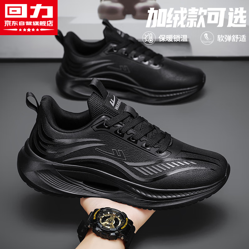 回力男鞋保暖运动鞋男冬季新款加绒棉鞋男百搭鞋子男 黑色(皮面) 42