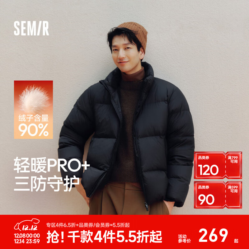 今日推荐:森马(Semir)轻松羽绒|羽绒服男三防外套发热保暖面包服冬2025新款抗静电 【高倍充绒】黑色(灰鸭绒)90001 L