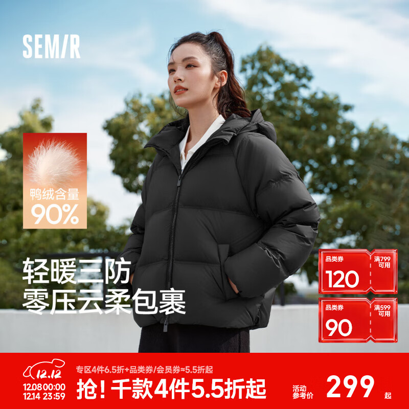 今日推荐:森马(Semir)羽绒服女90绒子短款轻暖三防可爱花苞帽2025冬新款立体防风外套 【正肩显瘦廓形】黑色90001 M