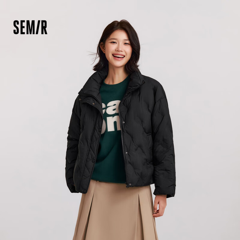 森马(Semir)羽绒服女冬季薄款90绒子防泼水防风千鸟格设计感外套101724113012