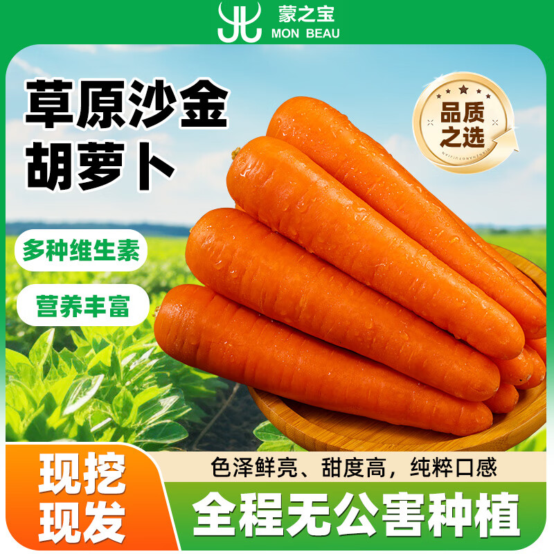 蒙之宝 MON BEAU内蒙带泥蜜脆沙金胡萝卜200gx13根左右2.5kg甜脆多汁源头直发包邮